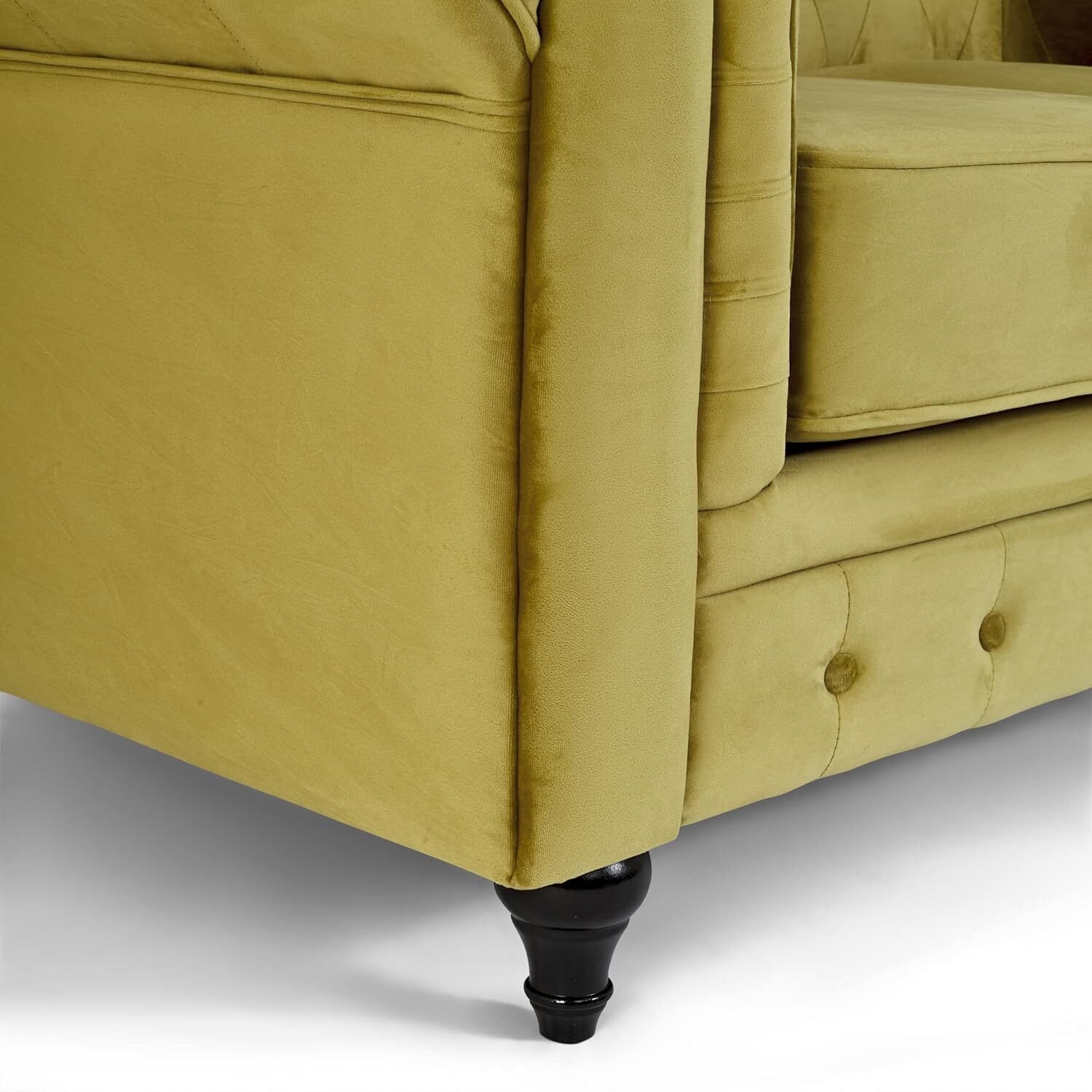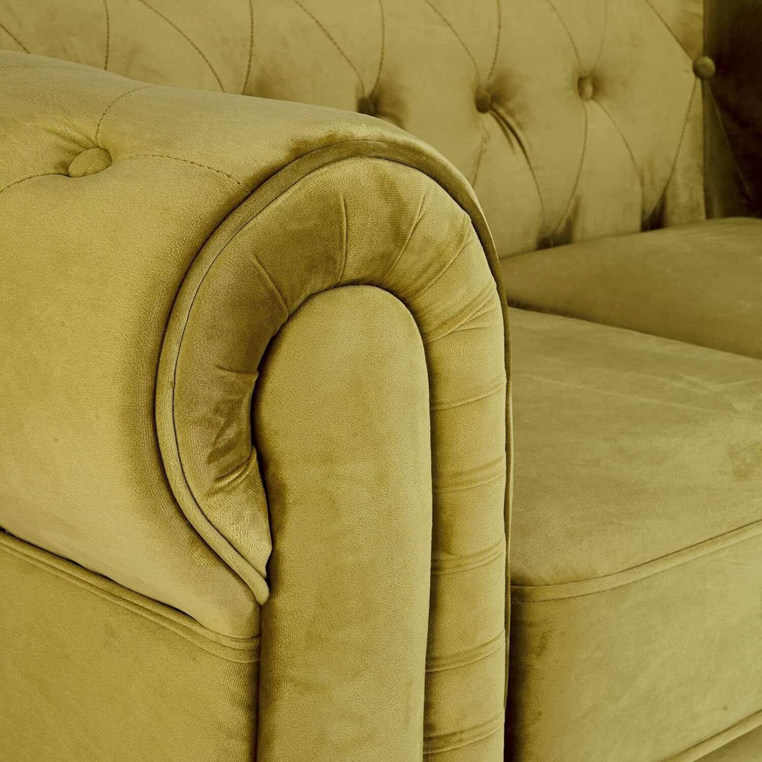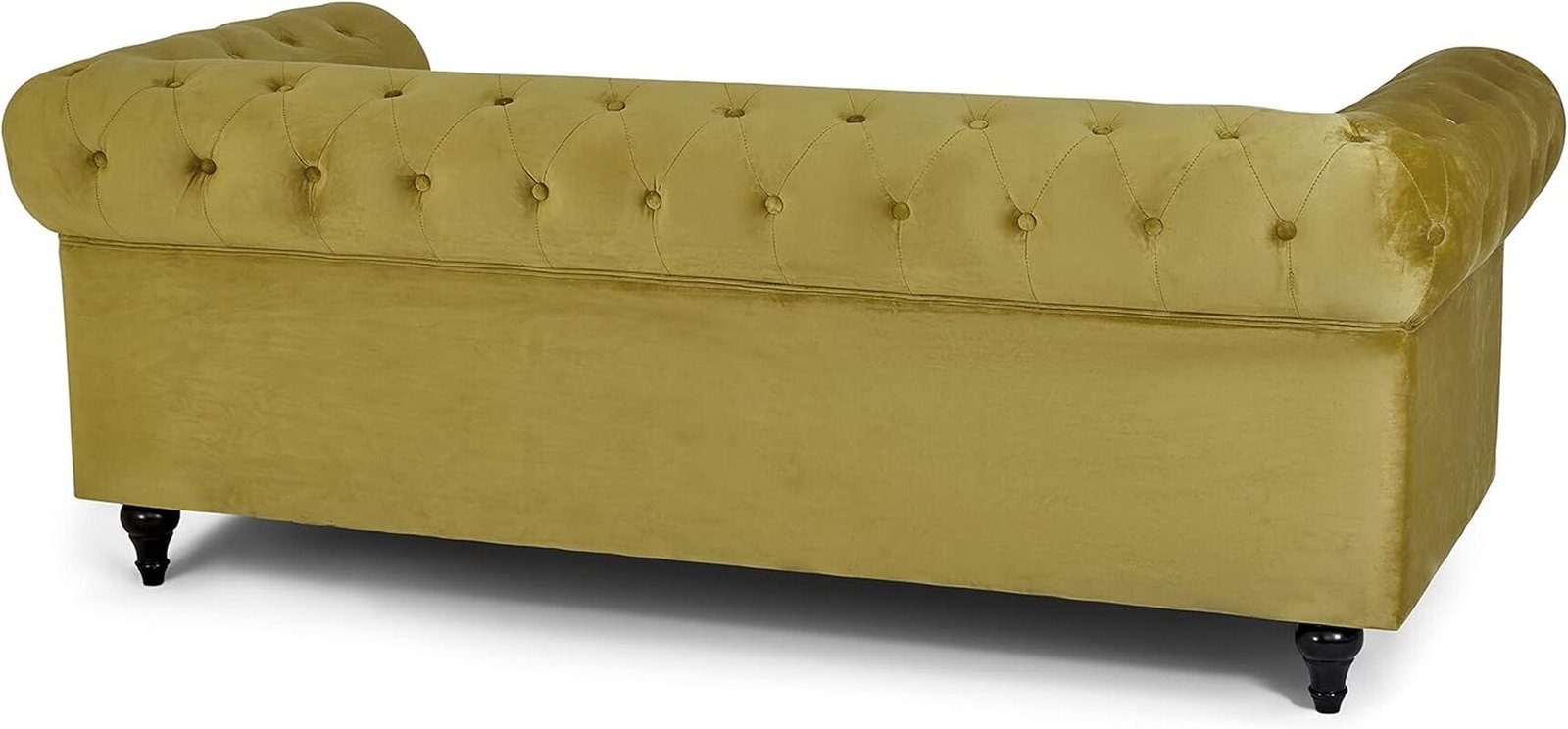 Gold Velvet Chesterfield Sofa – 3-Seater Plush Fabric Couch