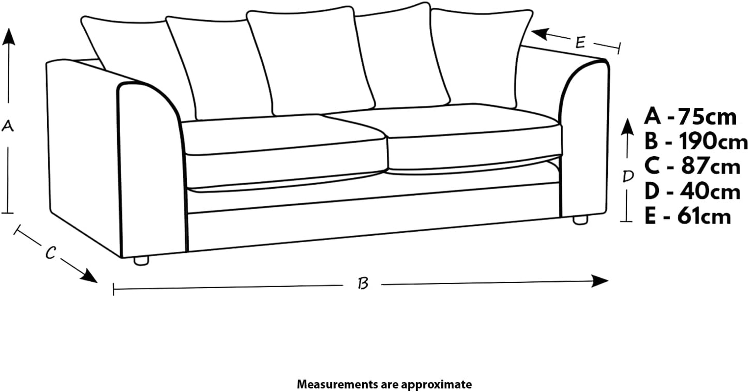 New Luxor Grey Fabric 3-Seater Sofa – Jumbo Cord Scatter Back Design